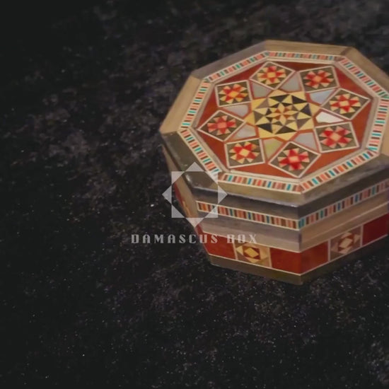 mini boîte octogonale en mosaïque, boîte damascène faite main, boîte à bijoux en nacre, souvenir du Moyen-Orient, boîte en bois de noyer, idée cadeau unique, boîte en bois artisanale, art mosaïque culturel, boîte de Damas, boîte syrienne, cadeau pour elle, cadeau pour lui