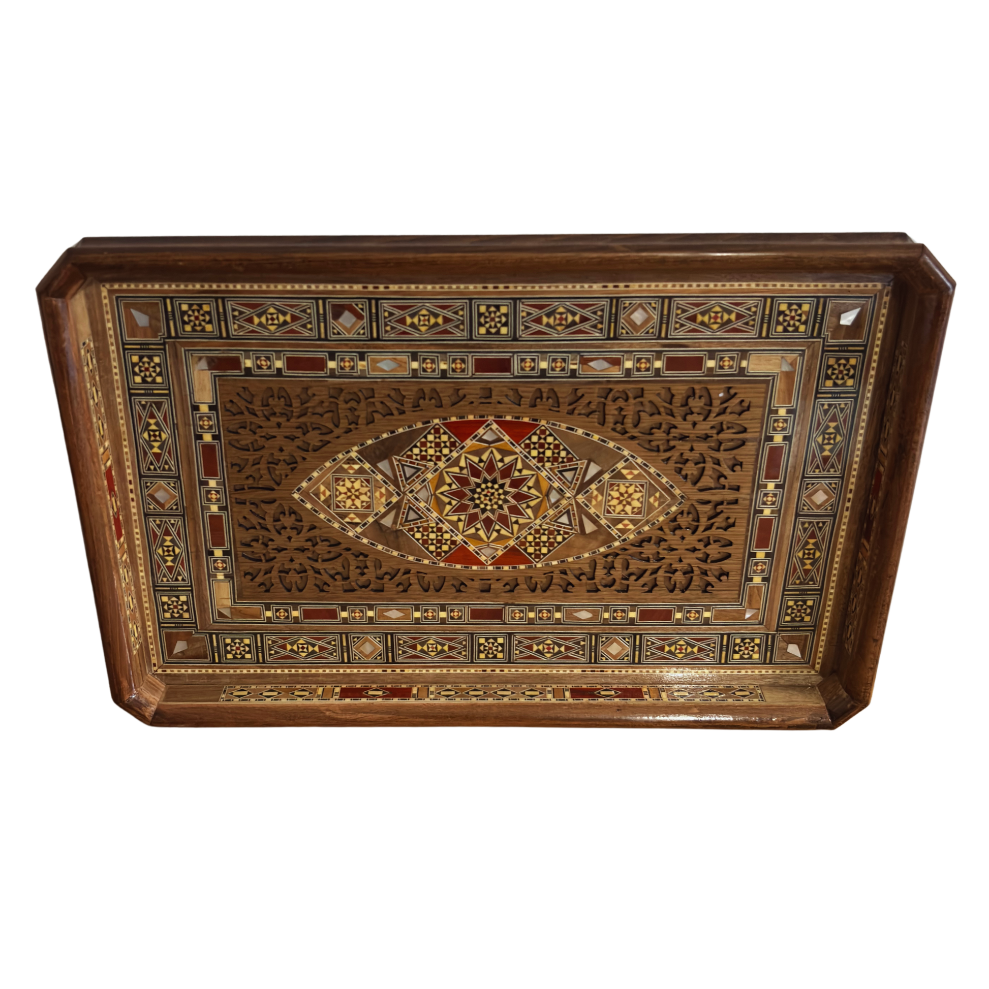 Bandeja Damasquina em Madeira – Madre Pérola & Tons Naturais da Madeira