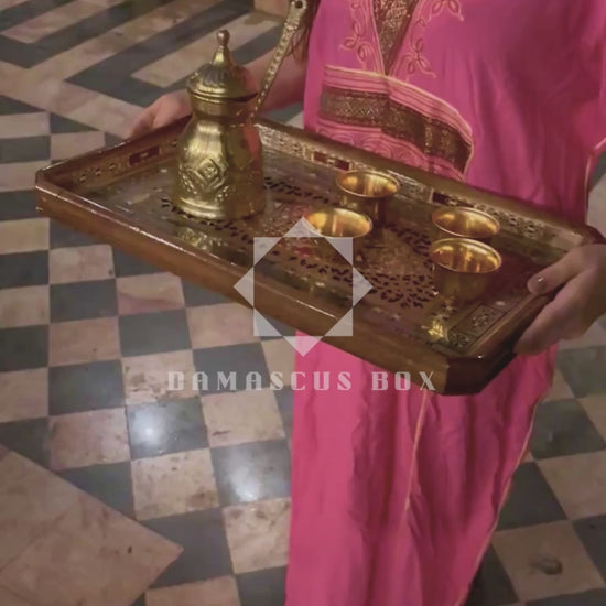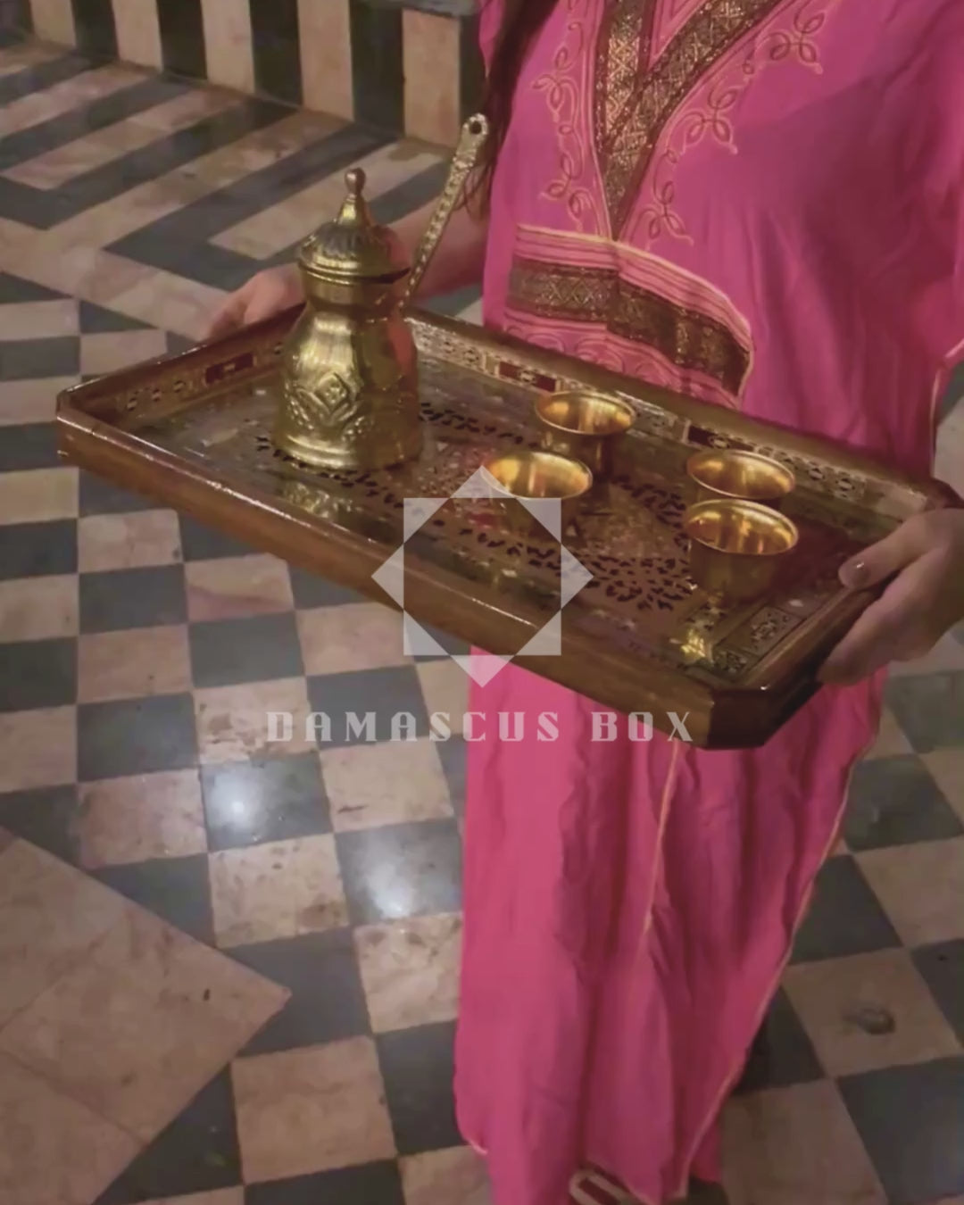 Esta bela bandeja de mosaico artesanal representa a essência da arte tradicional de Damasco.