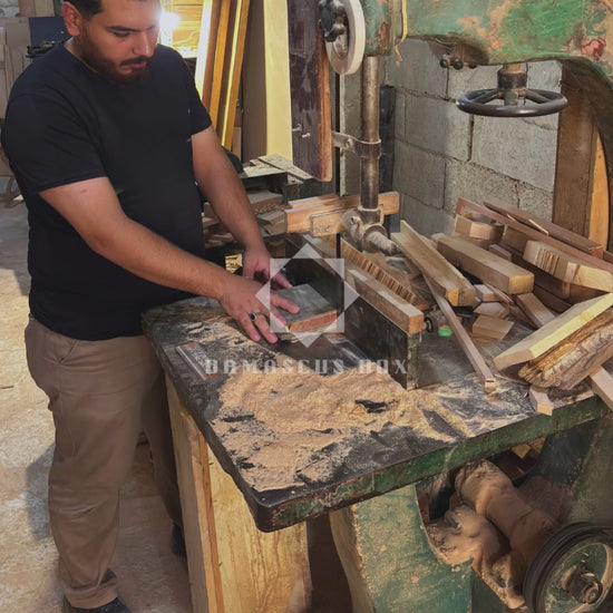 O design entalhado e as cores quentes e naturais evidenciam o equilíbrio e a beleza do trabalho artesanal damasquino.